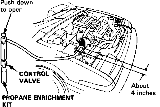 A propane enrichment kit is required to perform this test. Make sure that the propane bottle had an adequate quantity of gas before begining adjustment.