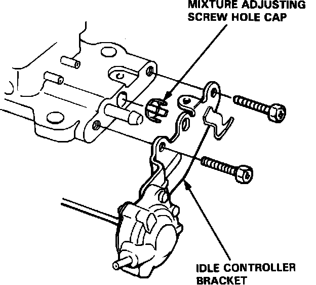 h. Remove the mixture adjustment screw anti-tamper cap, then re-install the idle controller bracket, Fig. 19.