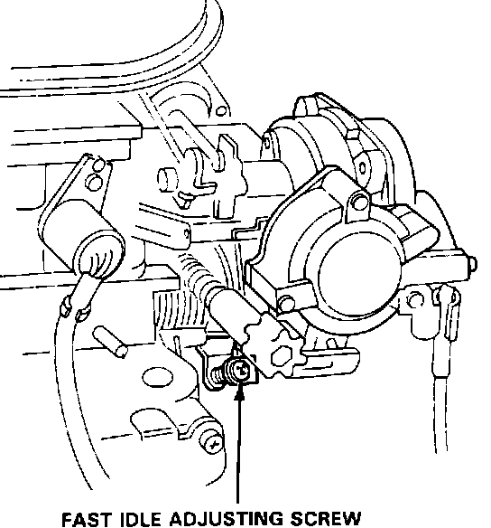 NOTE: Do not attempt adjustment on a cold engine. When checking fast idle on a cold engine, the specified idle speed may not be obtained. The factory procedure and specification require the engine to be at normal operating temperature