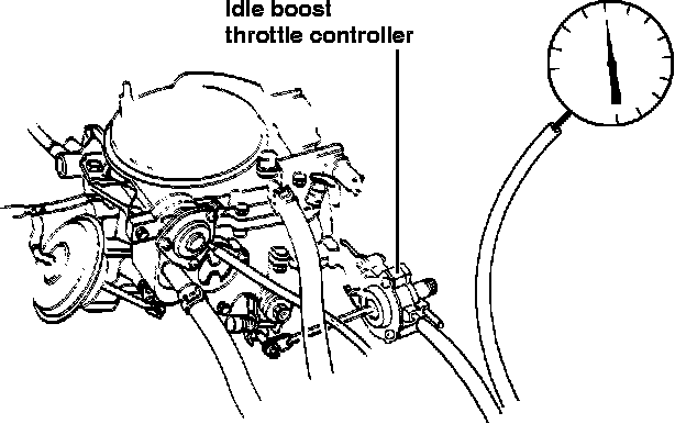 1. Disconnect the outer vacuum hose from idle boost throttle controller (manual transmission vehicles have only one port) and connect vacuum gauge.