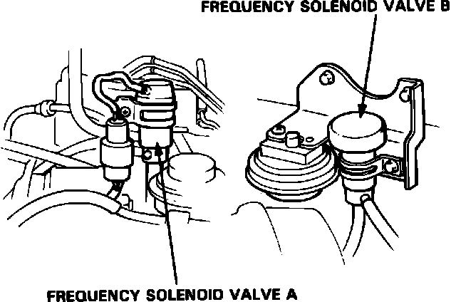 3. Connect the #14 hose back to the power valve. With the A/C OFF (if equipped) check that frequency solenoid valves A and B do not operate with the engine at idle.