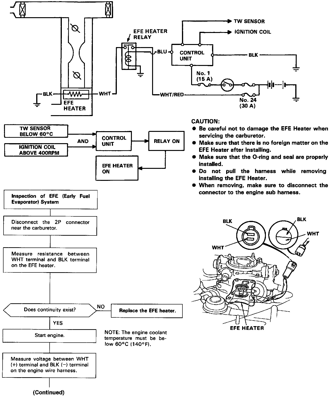 To promote improved engine operation while the engine is warming up, the carburetor insulator includes a heater in the primary bore. The maximum temperature of the heater is regulated by the electrical resistance of the heating element.
