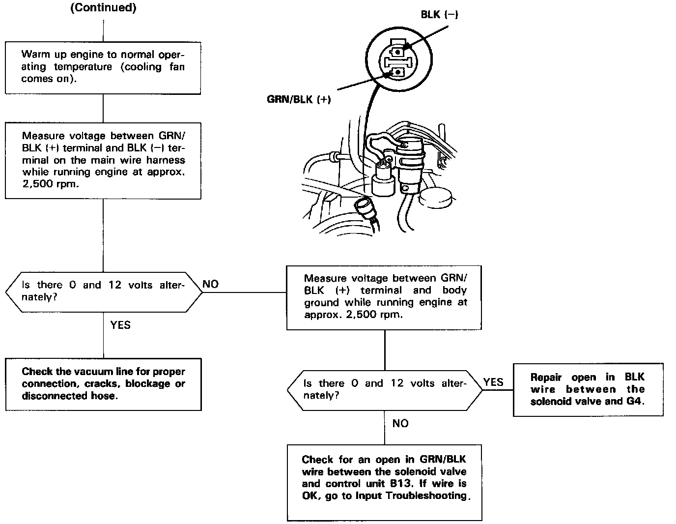 The frequency solenoid valve A, a part of the M-system, gets signals from the oxygen sensor through the control unit and opens air control valve A whenever the air/fuel mixture is richer than stoichiometric.