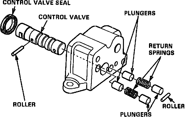 6. Remove rollers from control valve by pushing control valve out one side of housing then the other. When removing rollers, hold plungers with fingers to prevent them from popping out.