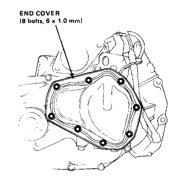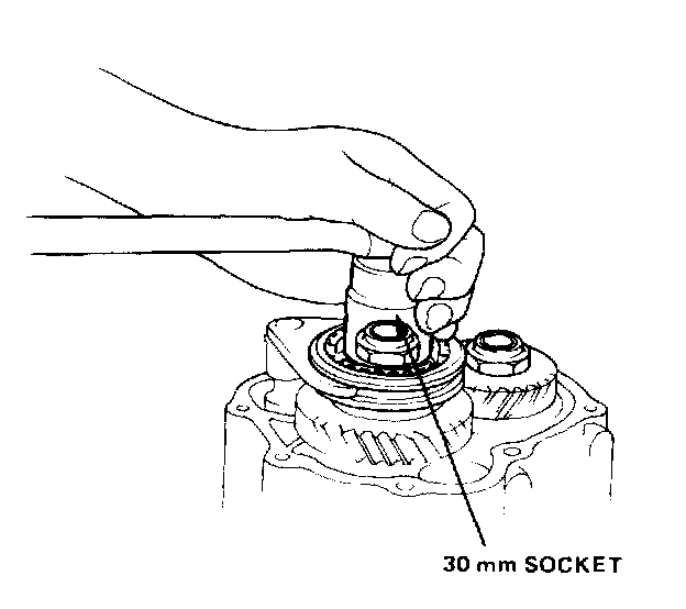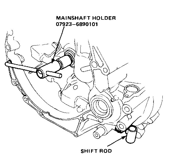 NOTE: Before removing mainshaft/countershaft locknuts, measure clearance between spacer collar and shoulder on fifth gear.