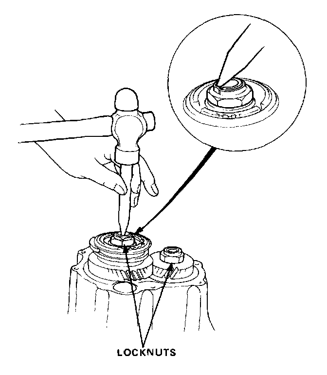 2. Bend locking tab on locknuts out of slots in main shaft and countershaft.