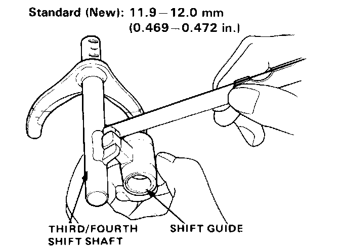 1. Check third/fourth shift shaft-to-shift guide clearance as shown.SHAFT-TO-GUIDE CLEARANCE