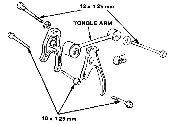 16. Remove the torque arm bracket bolts from the clutch housing.