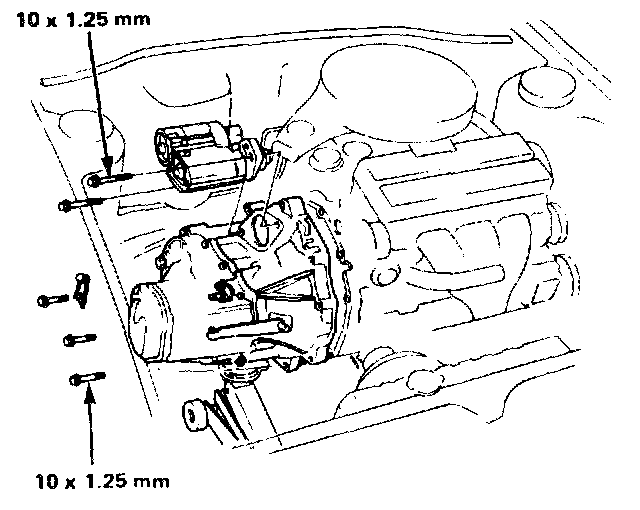 21. Remove the starter mounting bolts. Detach the starter motor and lower through chassis.