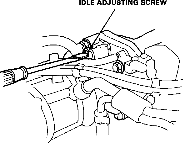 Adjust the idle speed, if necessary, by turning the idle adjusting screw.