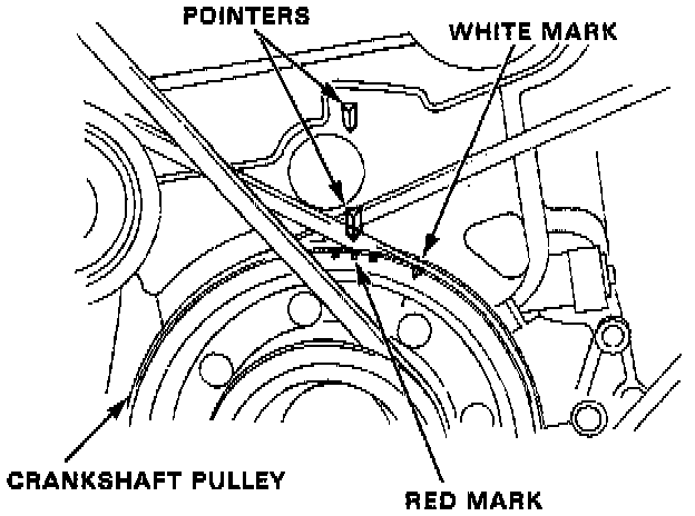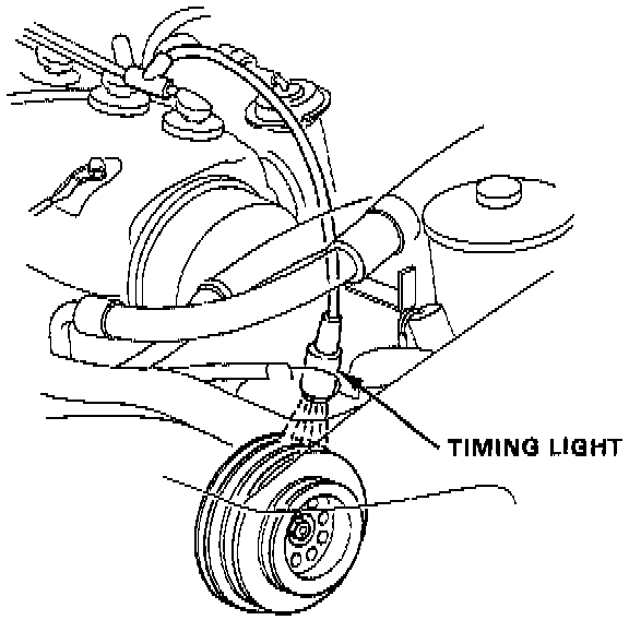 3. Connect a timing light to the engine; while the engine idles, point the light toward the pointer on the timing belt cover.