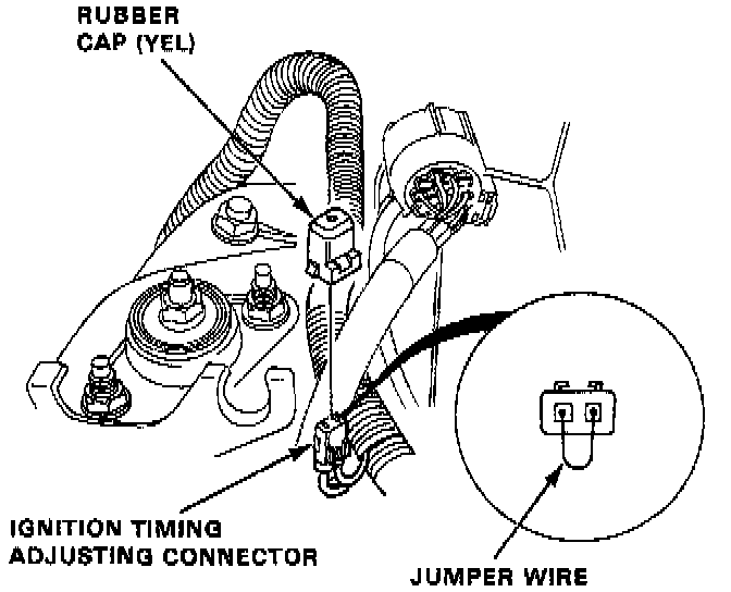 7. Remove the jumper wire and install the rubber cap onto the ignition timing adjusting connector.