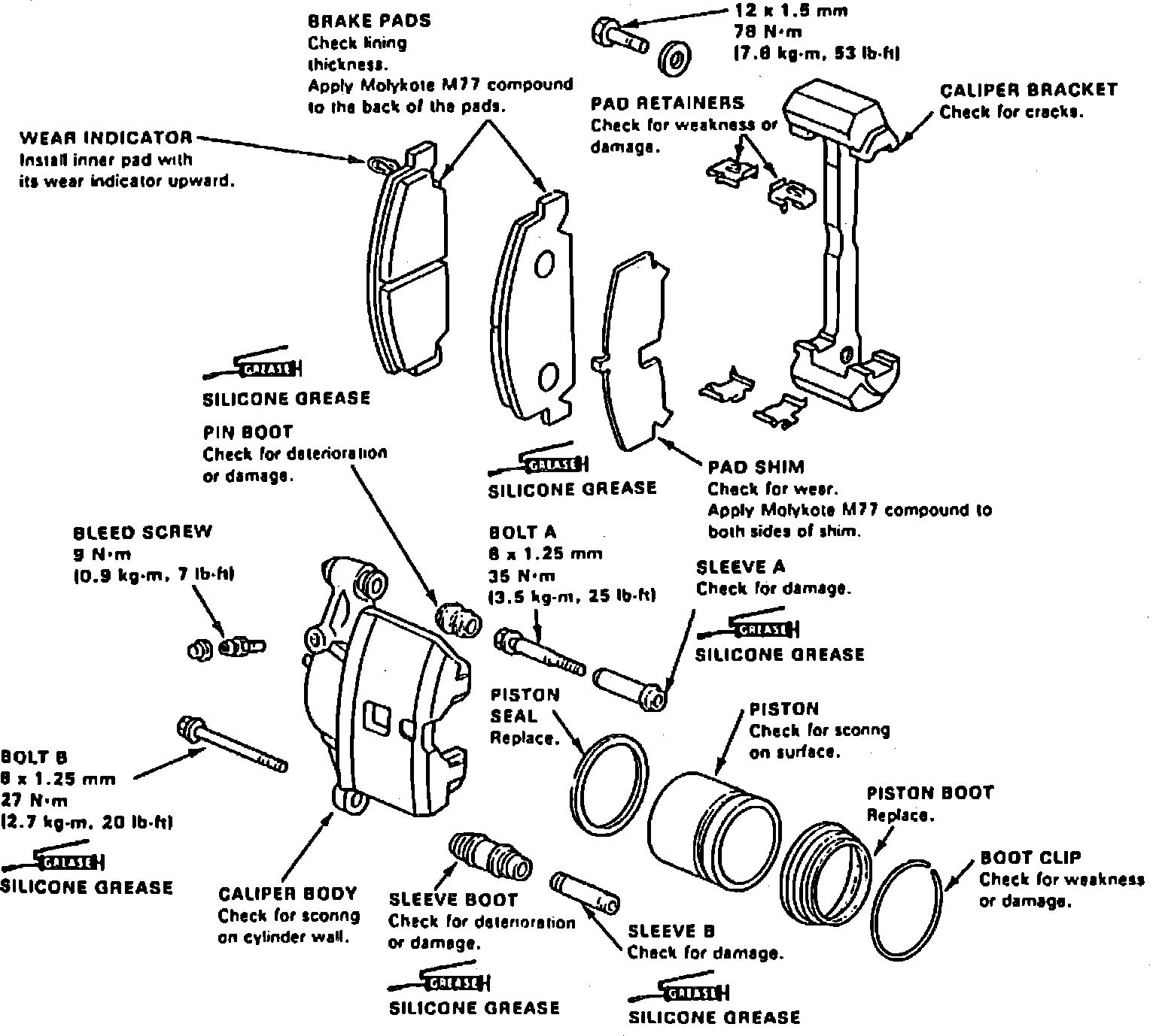 Fig. 5 Front Pin Sliding Disc Brake Caliper. 1989 Civic: