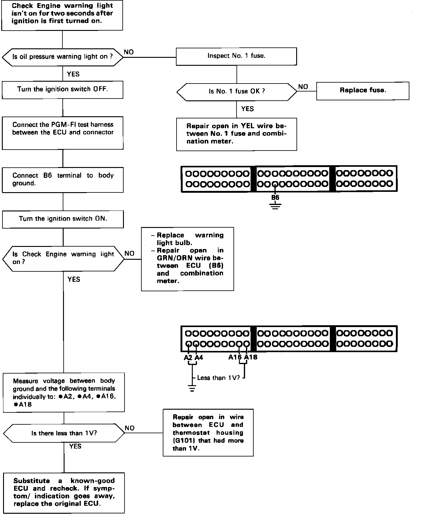 Fig. 22 CHECK ENGINE Warning Light Not On For 2 Seconds After Engine On.: