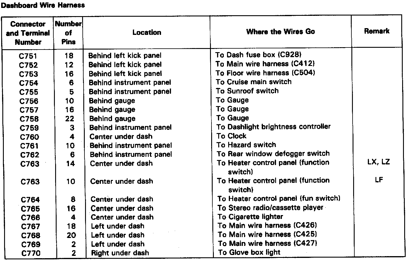 Dashboard Wiring Harness