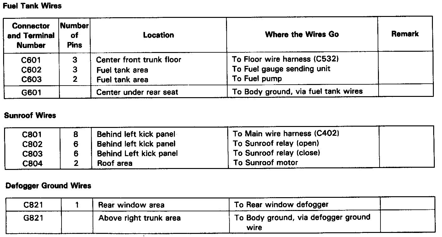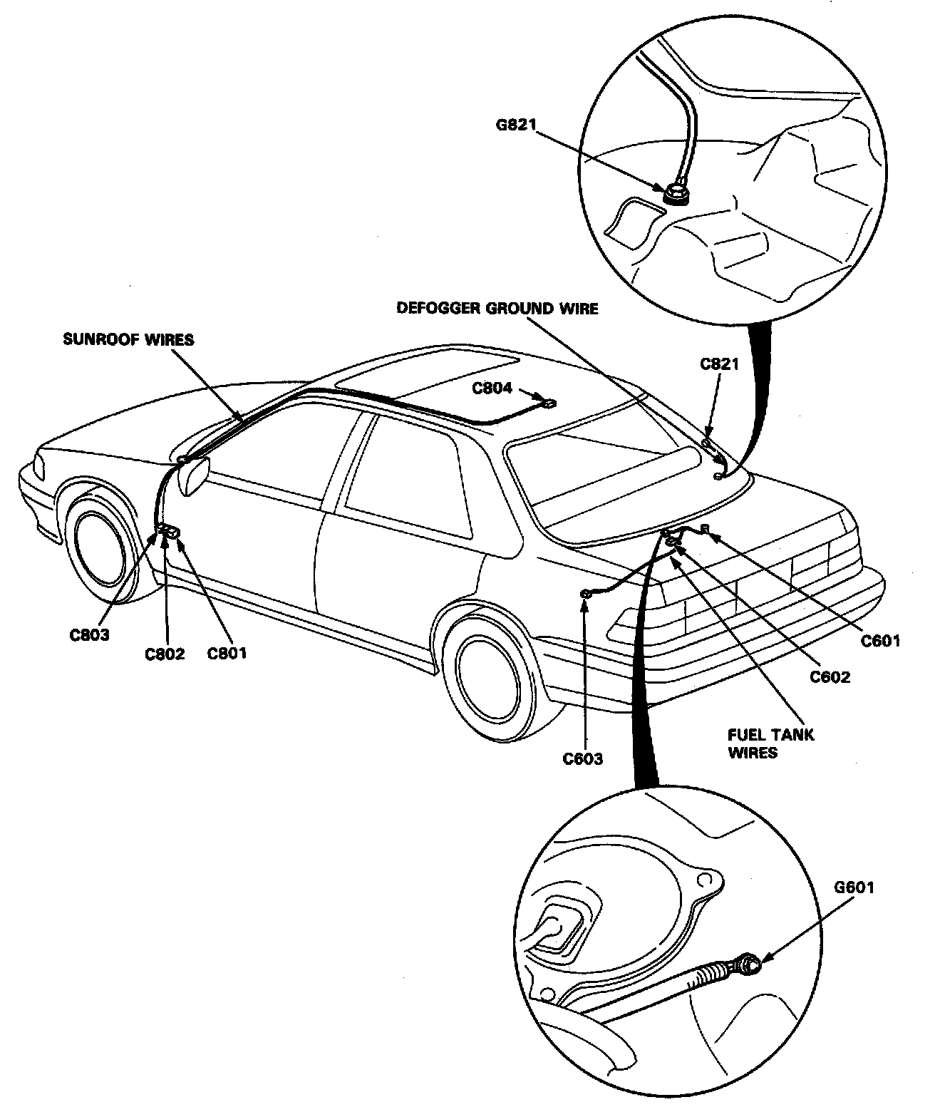 Fuel Tank / Sunroof / Defogger Ground Wires