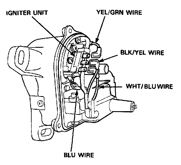2. Disconnect the BLK/YEL, WHT/BLU, YEL/GRN and BLU wires from the igniter unit.