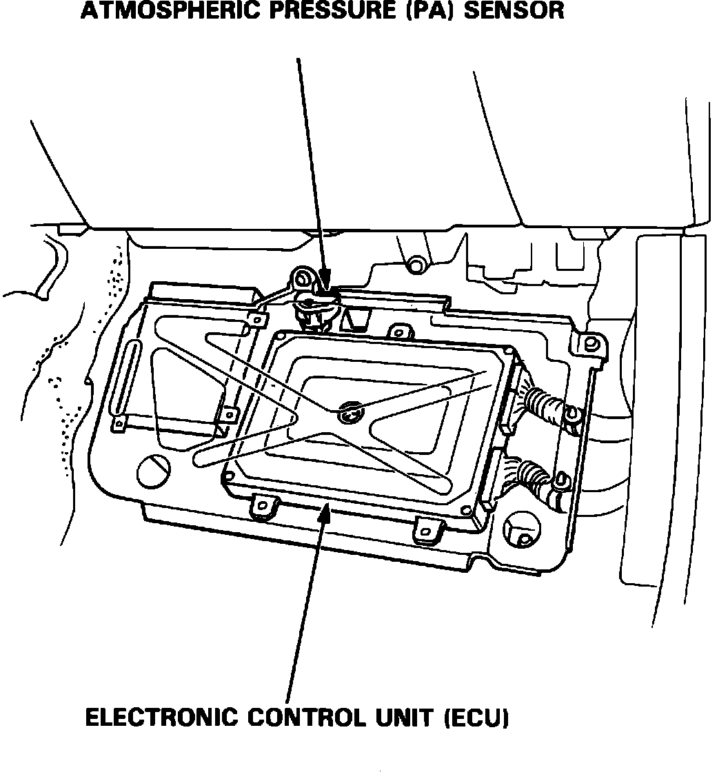 The Electronic Control Unit (ECU) is located in the passenger side foot-well.