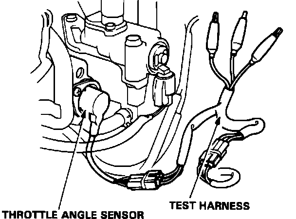 a. Remove and reinstall the throttle angle sensor, adjusting its position, if the voltage is out of specification, and repeat the test from step 6.