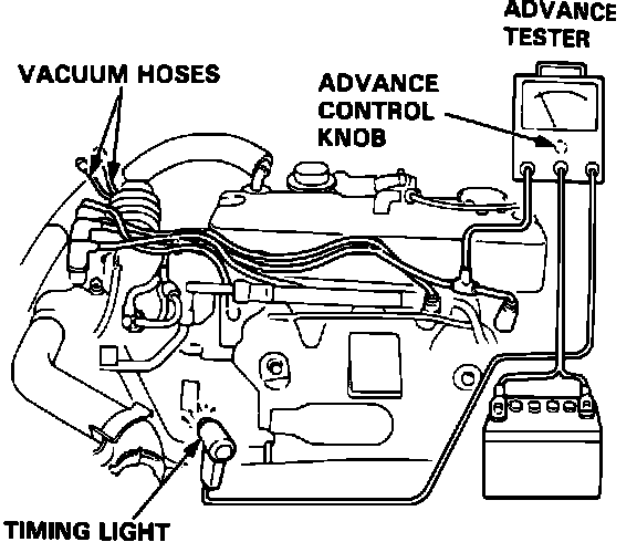 2. Connect a timing light with an advance tester to # 1 spark plug wire.