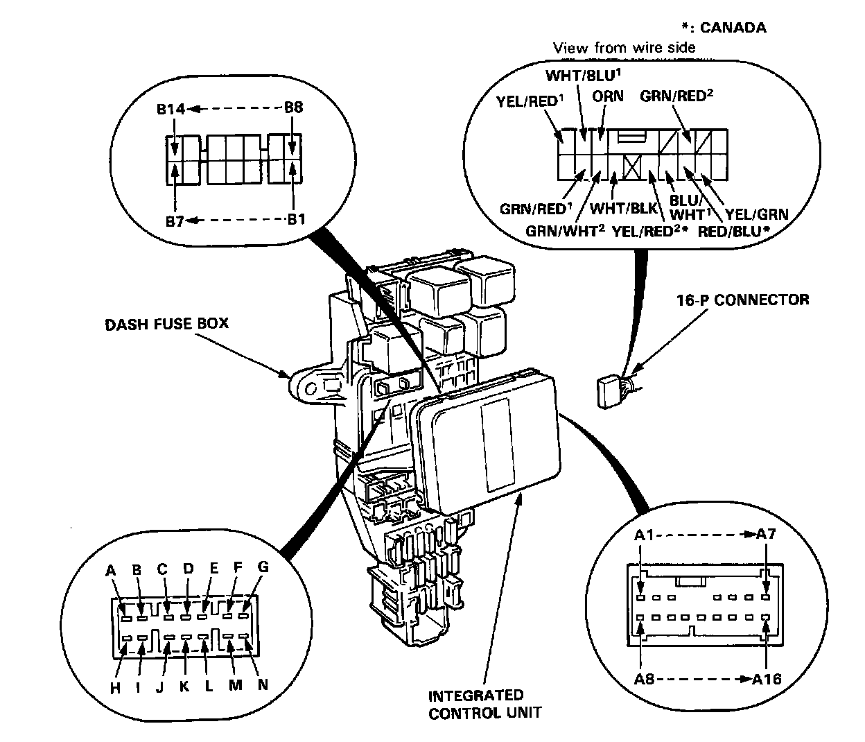 Remove the left side kick panel cover, then disconnect the 16-P connector from the integrated control unit. Remove the integrated control unit from the dash fuse box.