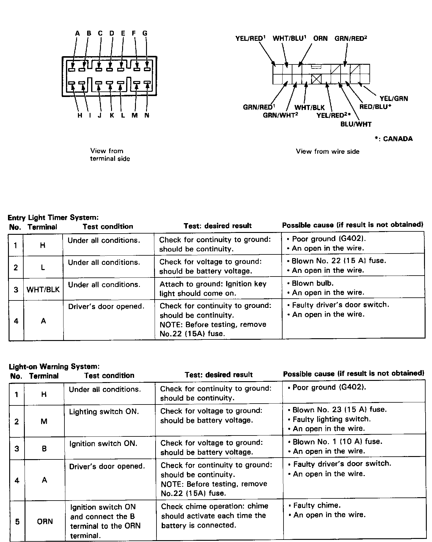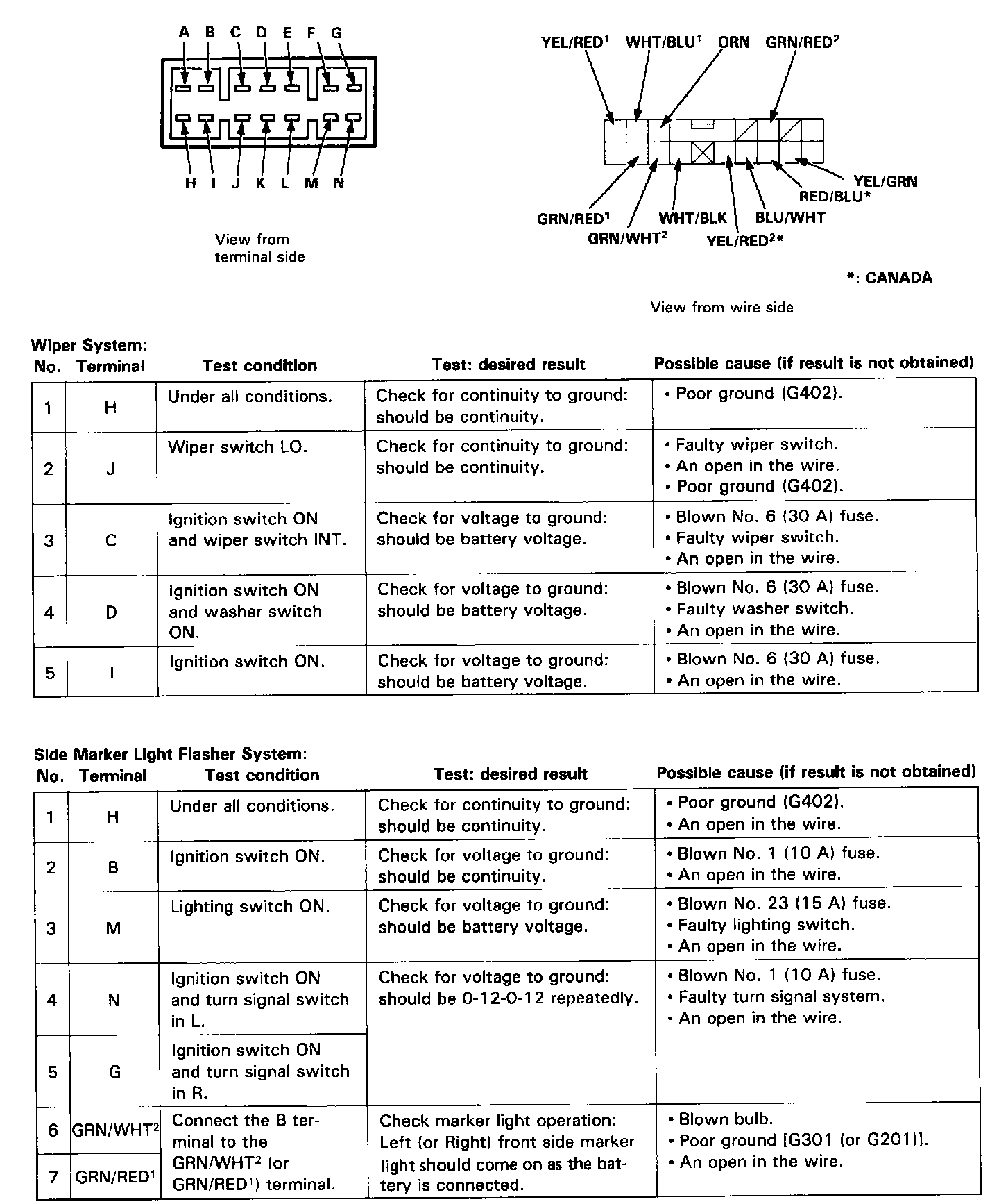 ^ Several different wires have the same color. They have been given a number suffix to distinguish them (for example BLU/WHT1 and BLU/WHT2 are not the same).