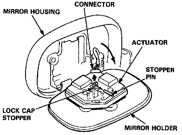 3. Pull the lock cap stopper and remove the stopper pin, then separate the actuator and mirror holder. Disconnect the connector.