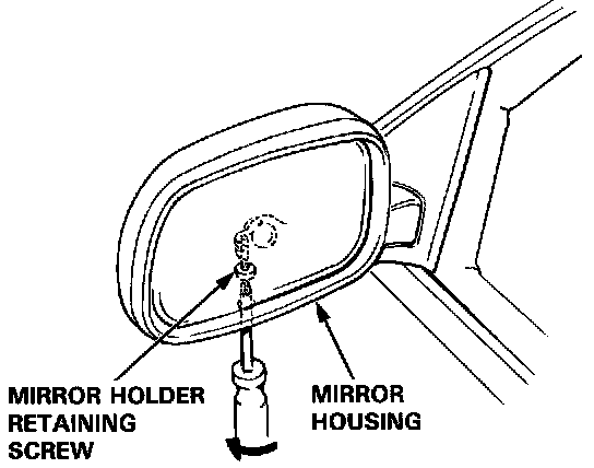 1. Insert a screwdriver in the mirror housing through the service hole, then loosen the mirror holder re taming screw.