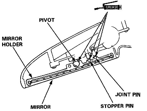 3. Install the mirror holder in the reverse order of removal and apply grease to the pivot joint pin and stopper pin.