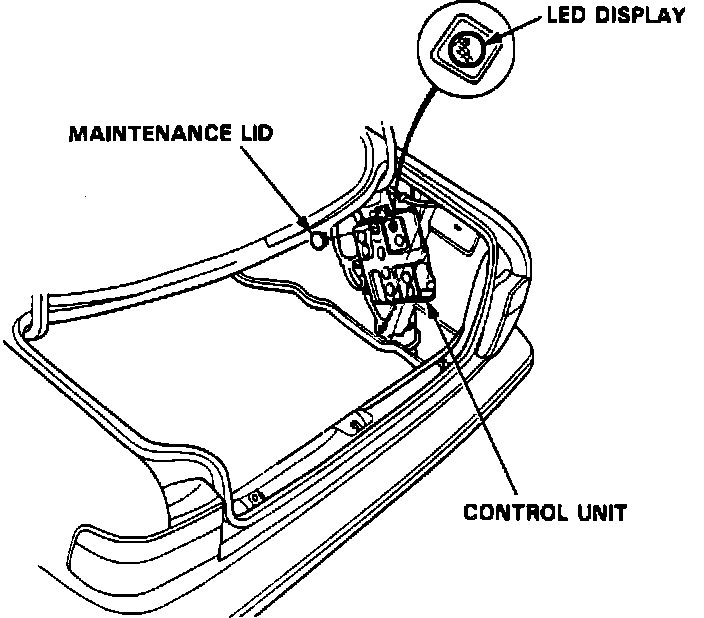 4. Turn ignition switch on and record blinking frequency of LED on control unit. Blinking frequency indicates problem code, Fig. 19.