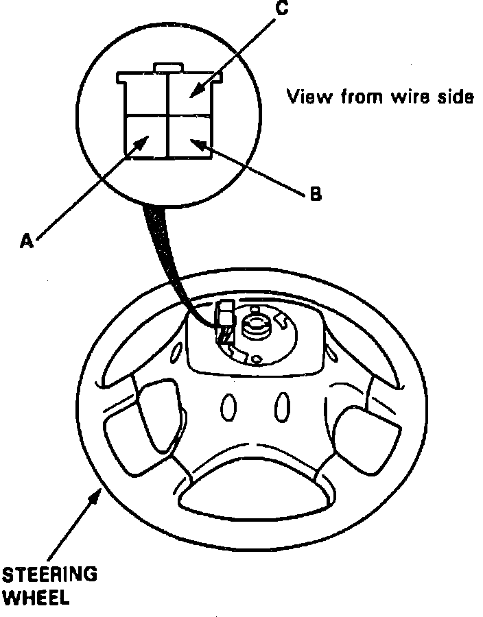 4. If there is no continuity in one or more switch positions, remove steering wheel and repeat step 3 at 4-P connector of the steering wheel, Fig. 34.