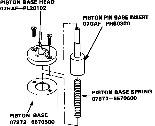 - When pressing the pin in or out, be sure to position the recessed flat on the piston against the lugs on the base attachment.