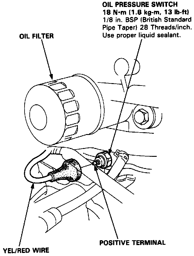 1. Remove the YEL/RED wire from the oil pressure switch.
