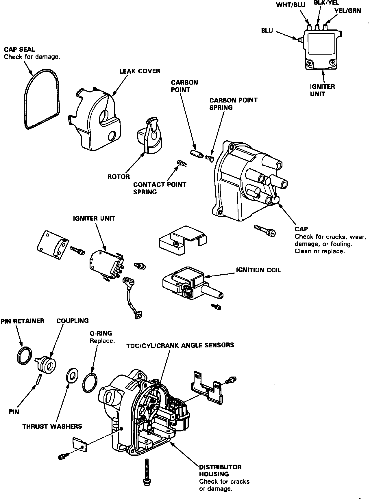 7. Check the distributor cap for cracks, wear and damages. If necessary, clean or replace it.