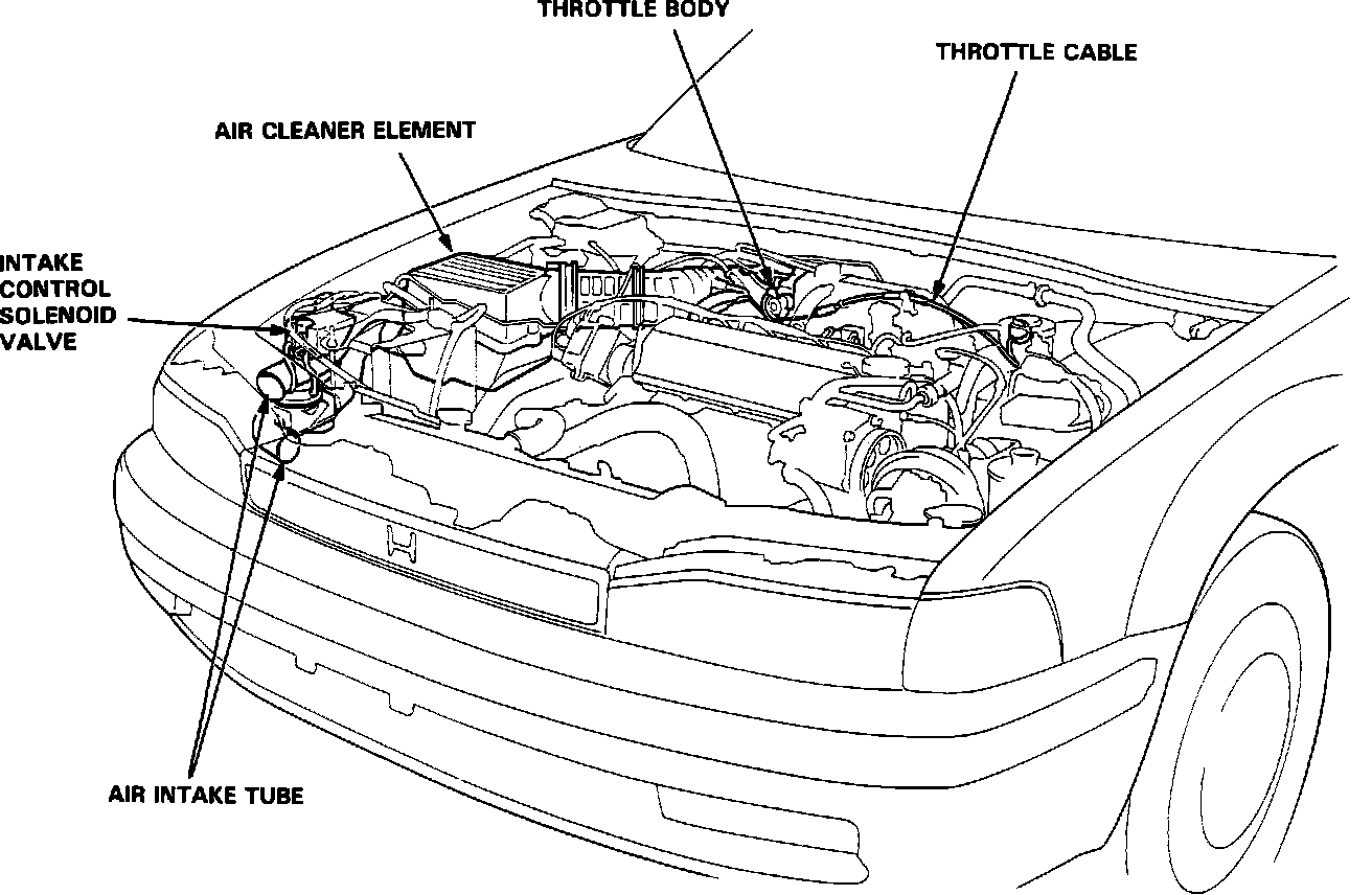 The Air Cleaner, mounted on the right fender, is a remote canister, paper-element style air cleaner. The Air Cleaner traps dirt and other contaminants before they have a chance to enter the engine. Air is drawn in through the air intake tube, filtered by the Air Cleaner, and then passes through the air flow tube into the throttle body.
