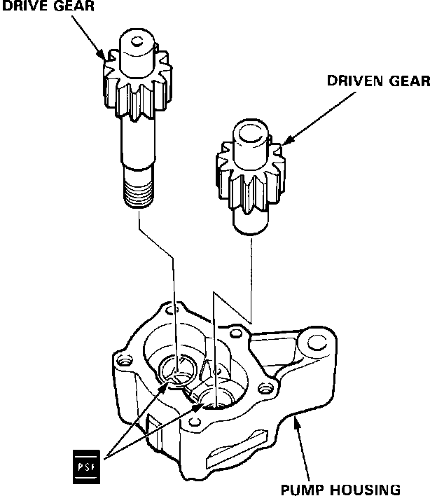 3. Install the drive and driven gears in the pump housing.