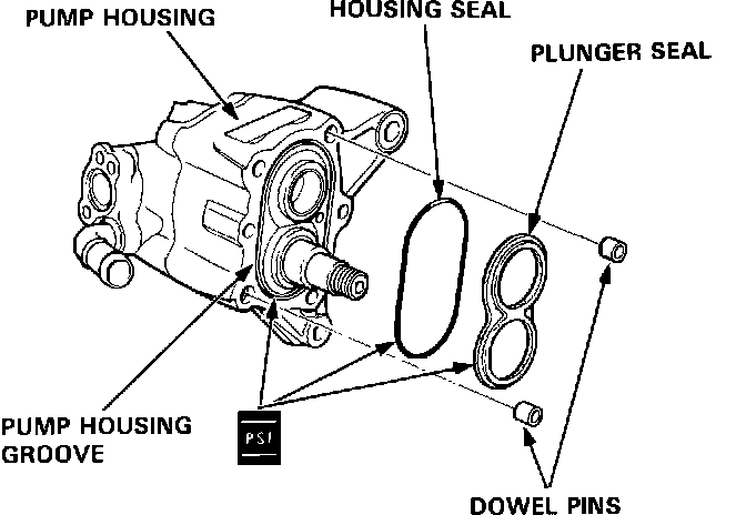 8. Coat the pump housing groove with power steering fluid, then position a new housing seal on the pump housing