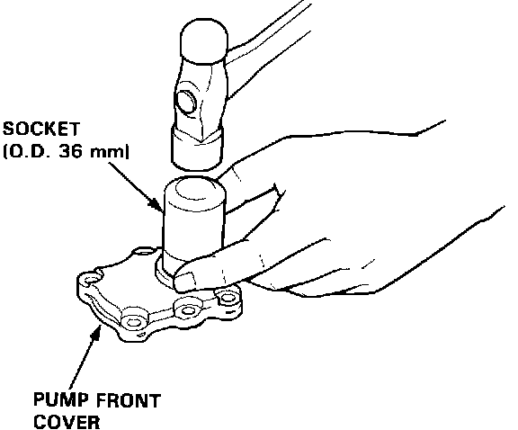 11. Install the new oil seal in the pump front cover; get it started by hand, then use a socket to push it in the rest of the way.