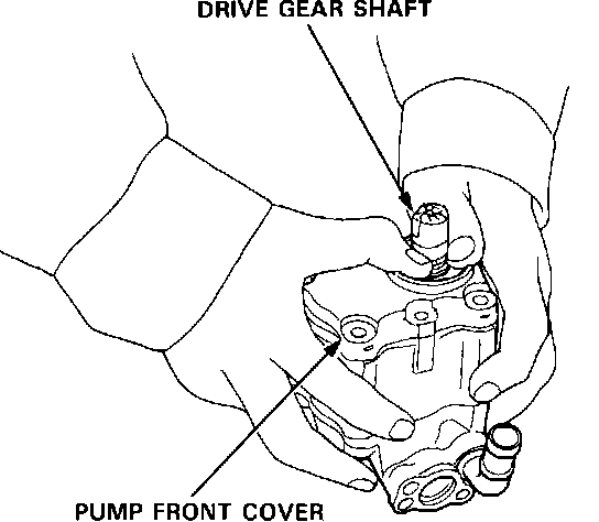 14. Slide the pump front cover over the drive gear shaft, being careful not to damage the sealing lip or dislodge the spring of the oil seal, then remove the vinyl tape.