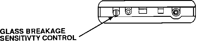 The glass breakage sensitivity control is located on the front panel of the main unit (underneath the seat). It's preset at the factory, but can be readjusted. Turn the control clockwise to increase the sensitivity or counter-clockwise to decrease the sensitivity.
