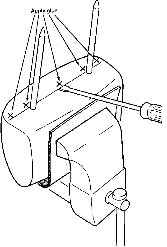6. Carefully apply small amounts of cyanoacrylate ("super glue") to the areas shown.