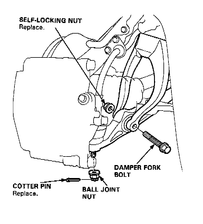 13. Remove the cotter pins and lower arm ball joint nuts.Separate the lower ball joint from lower control arm.