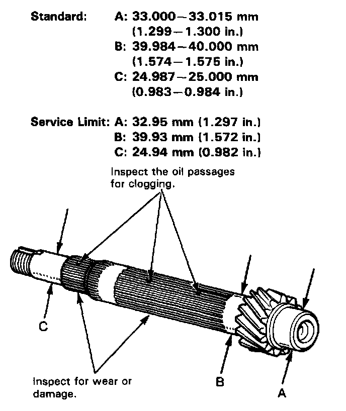 Measure the countershaft at points A, B and C.