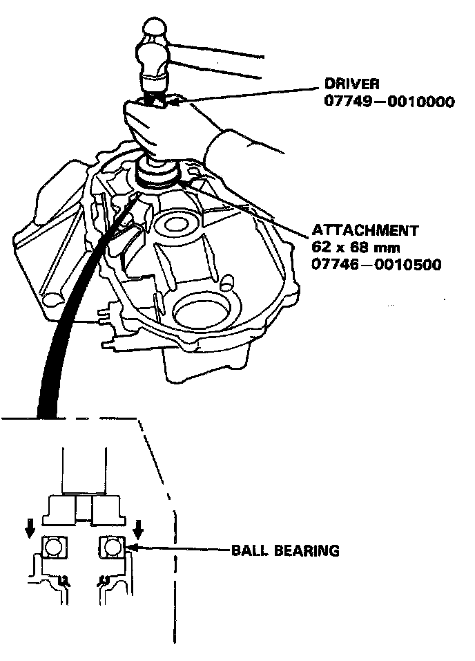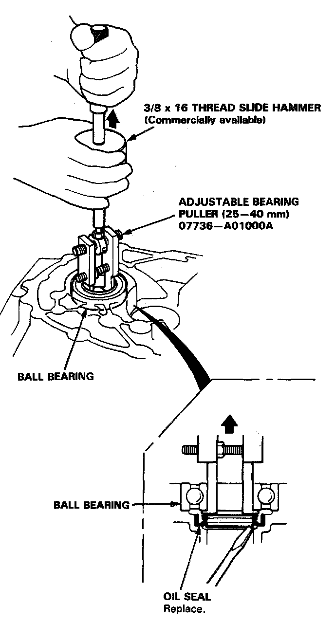 1. Remove the ball bearing with the special tool.2. Remove the oil seal from the clutch side.
