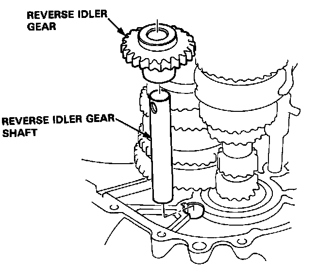 5. Install the reverse idler gear and idler gear shaft in the clutch housing.