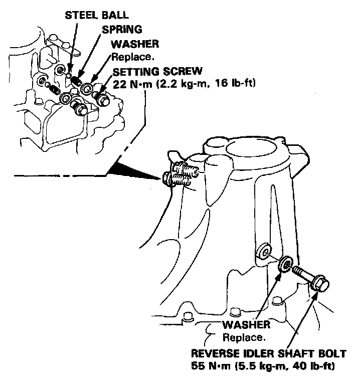 16. Install the reverse idler shaft bolt.