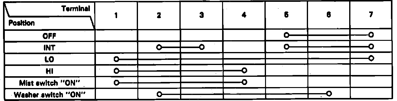 Fig. 5 Wiper/Washer Switch Continuity Chart: