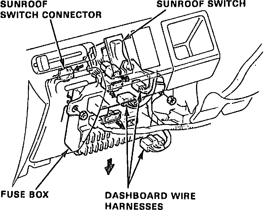 Fig. 15 Dashboard Wiring Harness And Sunroof Switch Connectors: