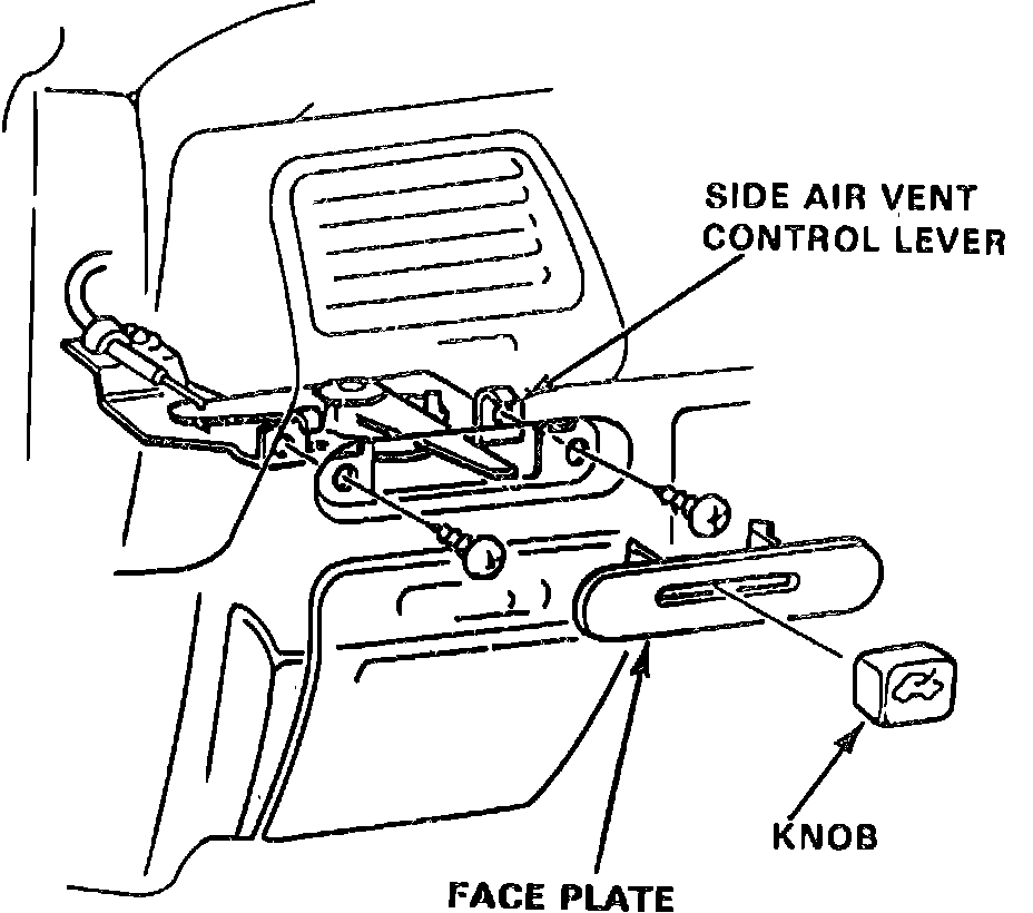 7. Remove side air vent knob and face plate, then remove two screws attaching side air vent control lever, Fig. 17.