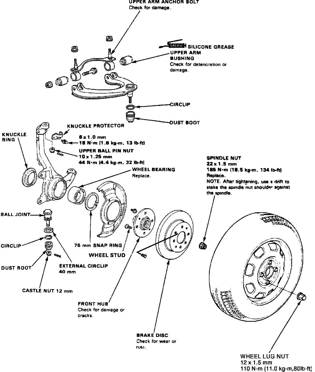 Fig. 4 Exploded View Of Steering Knuckle & Hub Assembly. Civic, CRX & Delsol: